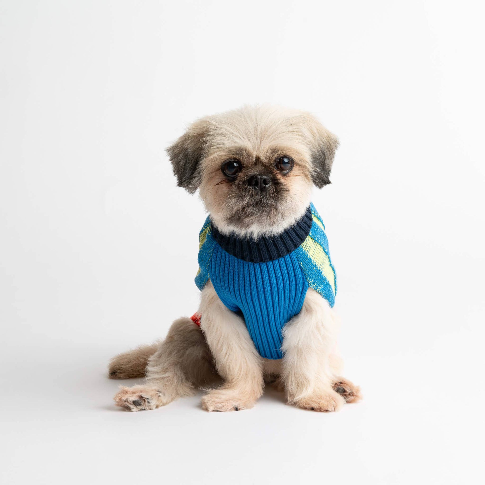 Big Stripe Dog Sweater: Lime Cobalt / L - 27-40 lbs