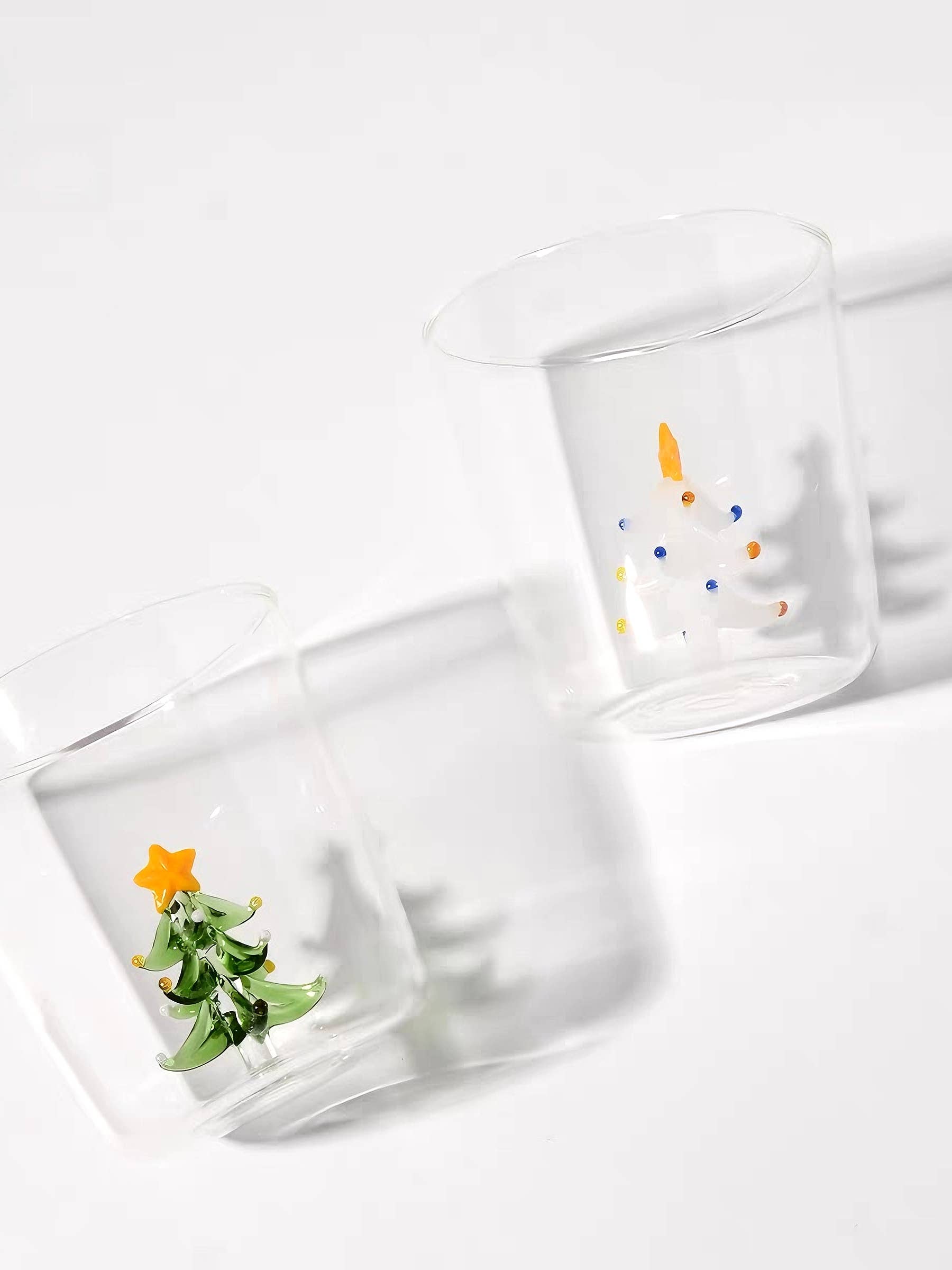 Celebrate the magic of the holiday season with our festive Christmas glass cups. These charming cups feature colorful Christmas tree designs and a delightful Santa Claus figurine inside, making them the perfect addition to your holiday decor. Whether you're sipping hot cocoa, mulled wine, or any seasonal beverage, these beautifully handcrafted cups add a personal touch to your celebrations. Great for gifting or keeping, they’re a must-have for anyone looking to add a festive spirit to their drinkware.