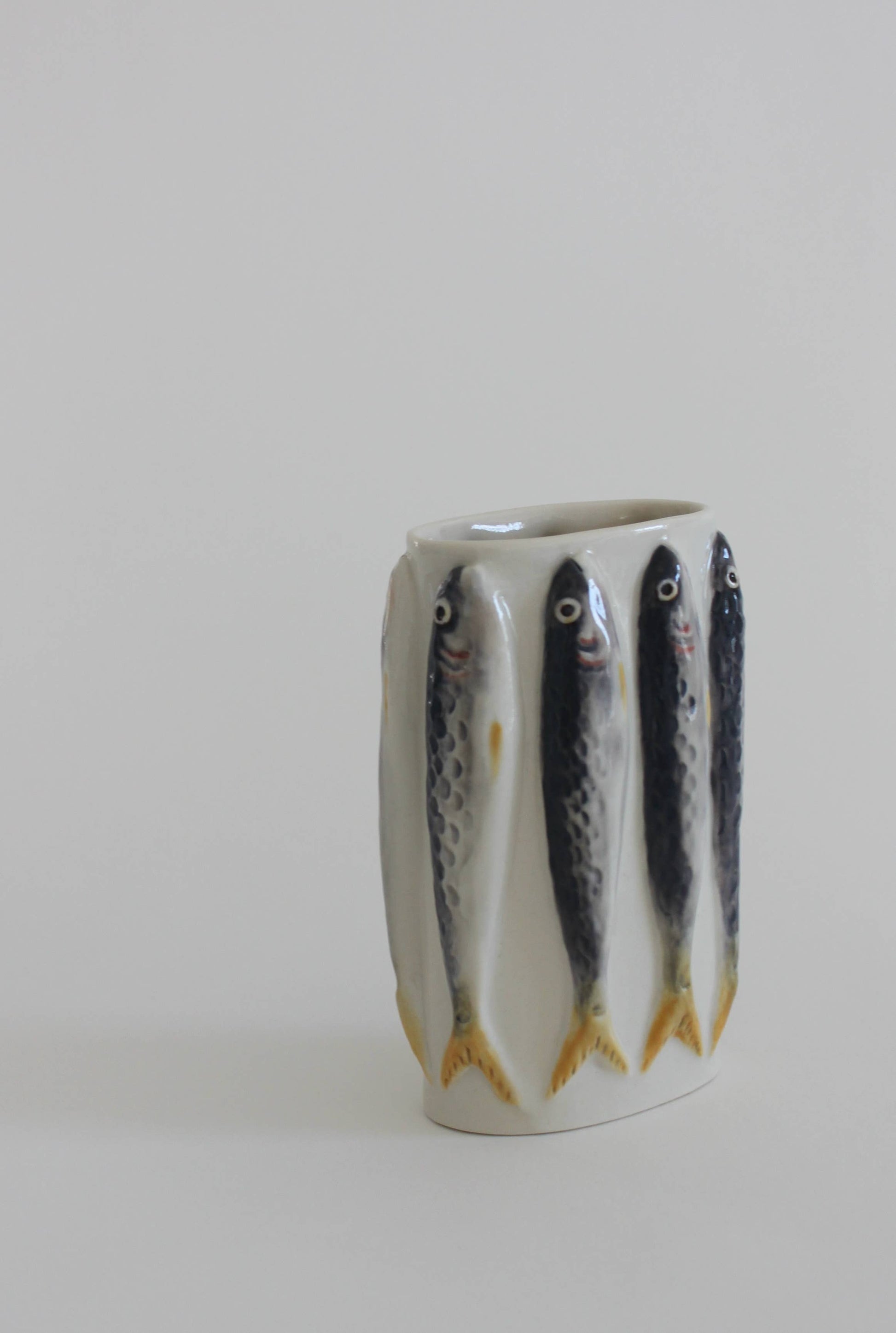 This charming Sardine Vase is crafted in high-quality porcelain and adorned with intricate hand-painted details by none other than myself. Drawing inspiration from iconic fish tins, this unique vase is designed to complement your favorite flowers beautifully. Each vase is crafted with care and attention to detail, making it a delightful addition to any home.