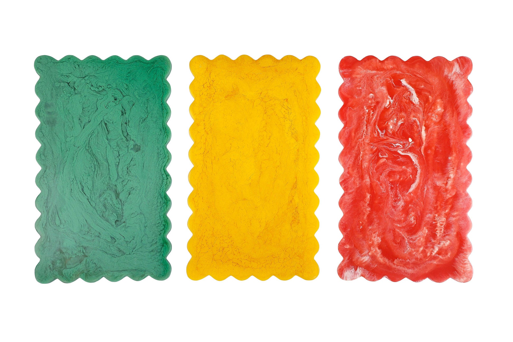 Make your tablescape pop with this dazzling Green resin cheese board! With bold swirls and wavy edges, Ideal for cheese, snacks, or sweets, it's sure to impress at any gathering. Each board features a unique marbled pattern with playful wavy edges.